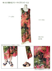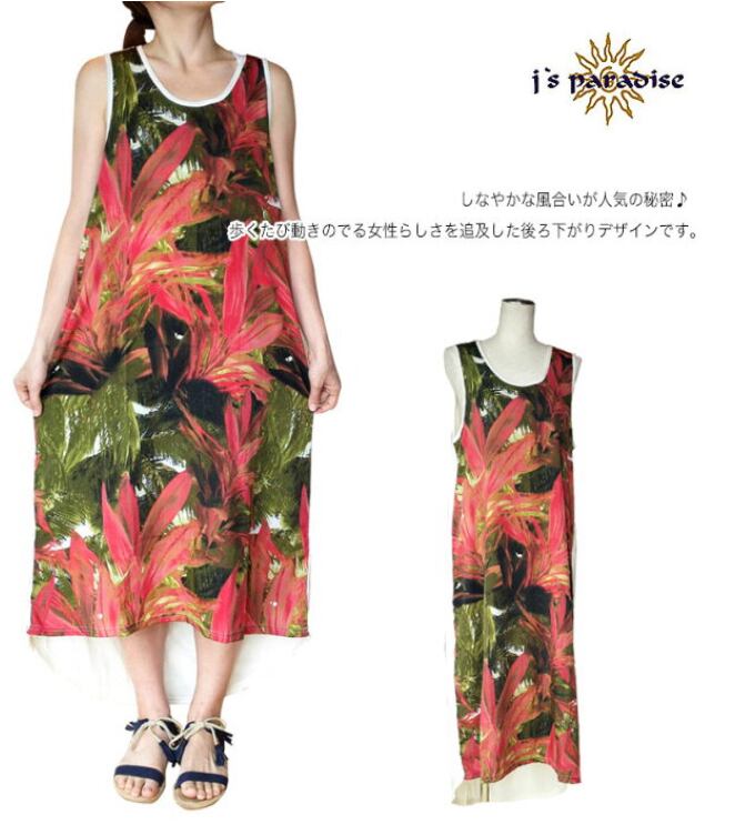 南国風プリント後ろ下がりワンピース 【フリーサイズ】【大人気の南国風プリント!!]】大人の エスニック アジアン ファッション インド フリーサイズ 花柄 トロピカル リゾート 後ろ下がり 夏 涼しい ワンピース ワンピ 赤 緑 白 レッド グリーン ホワイト 10P26Mar16